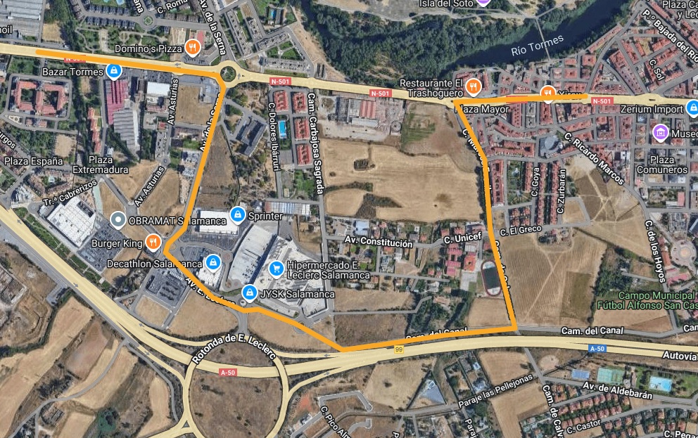 Que con motivo de las obras que se van a realizar en la GLORIETA UD. SANTA MARTA, se va a cortar el tráfico hoy día 02/12/2025 a partir de las 19:00 horas y hasta mañana día 03/12/2025 a las 8:30 horas quedando el recorrido alterado y suprimiendo las paradas denominadas como SIGLO XXV Y MADRES SOLTERAS.